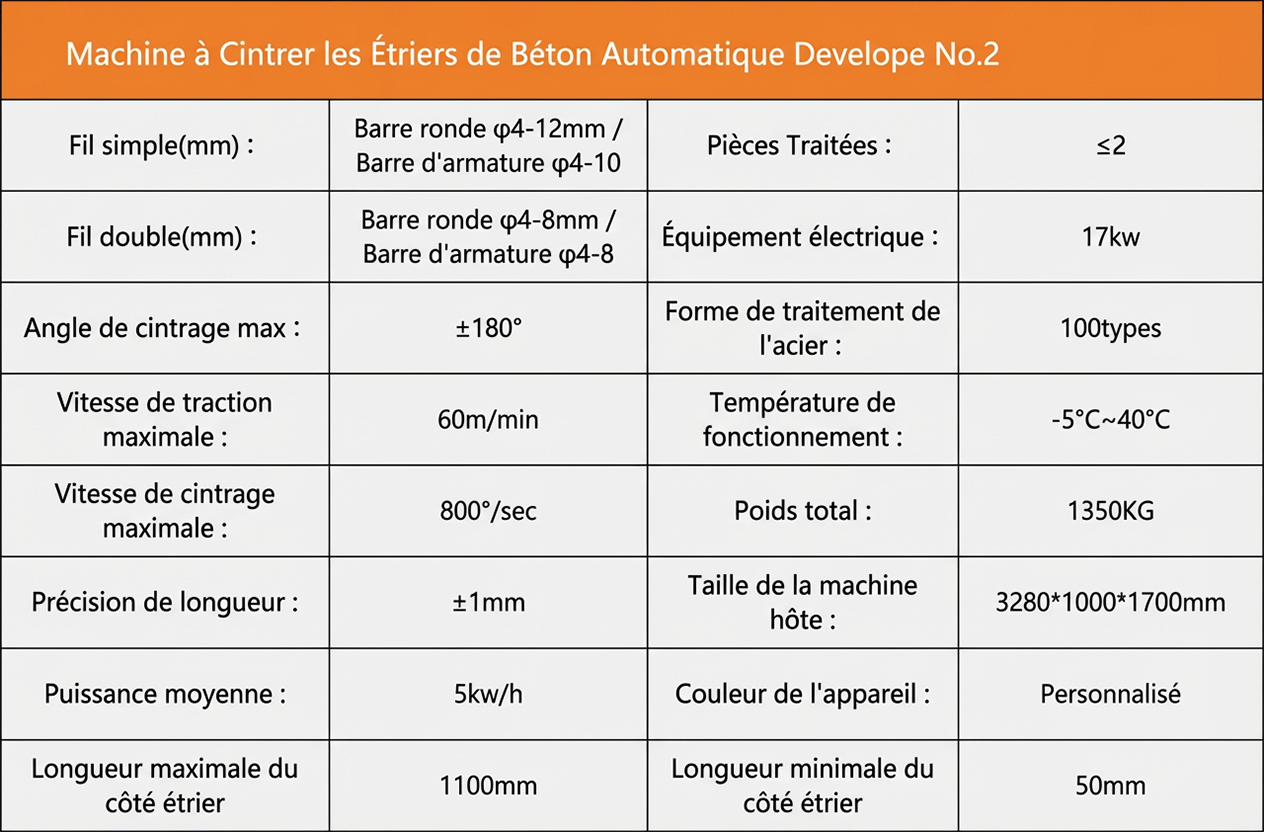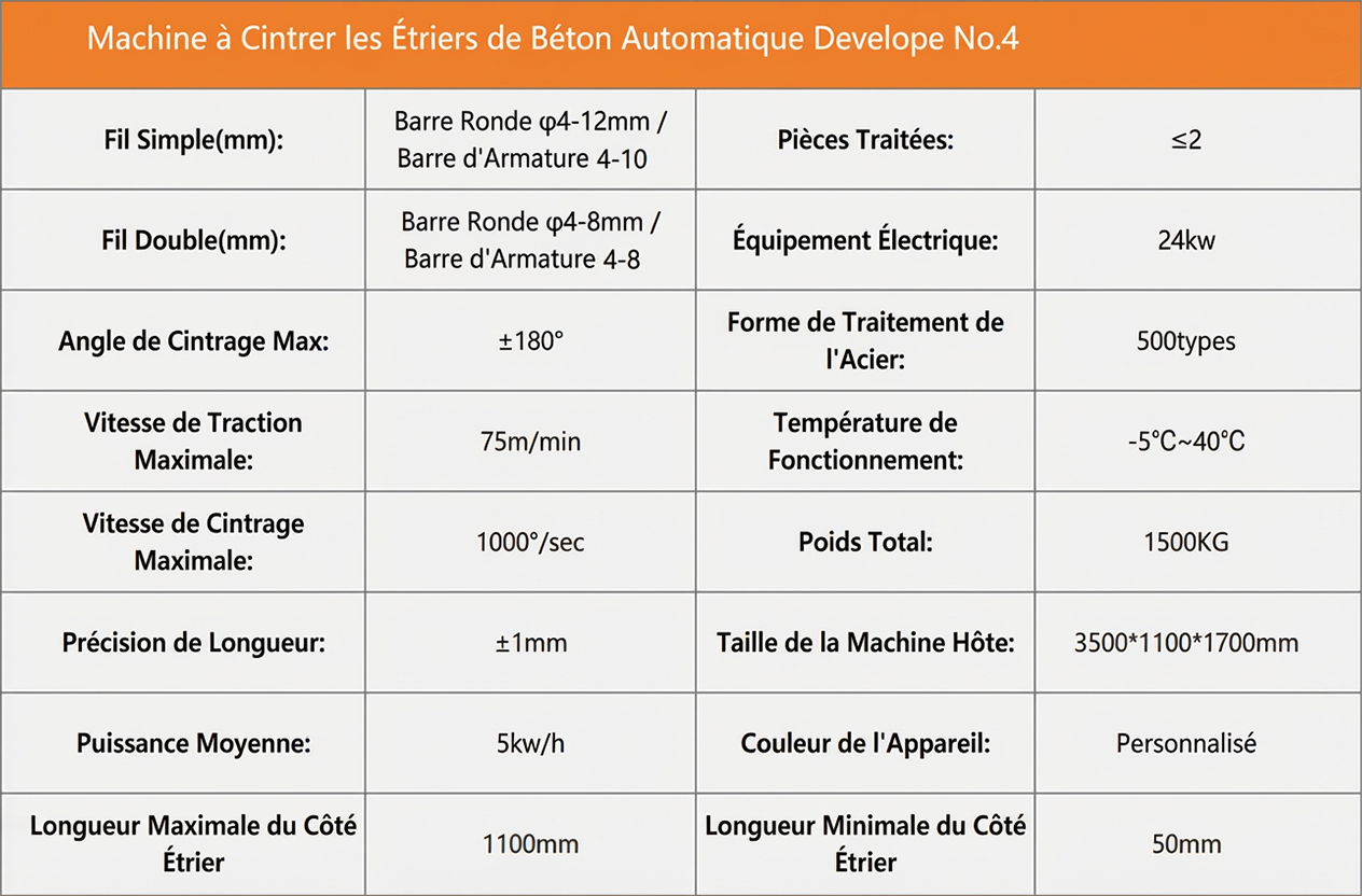 3. Capable de produire de 1 900 à 2 500 étriers par heure (fil double), avec une très grande rapidité.